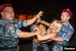 Александр Лукашенко прибыл на Украину вечером в понедельник, а спустя несколько часов три активистки скандально известного женского движения Femen устроили “ночную облаву на место ночевки” белорусского лидера. Под окнами гостевой резиденции с факелами в руках они требовали от Лукашенко покинуть Украину, пока за ними не приехали стражи порядка.