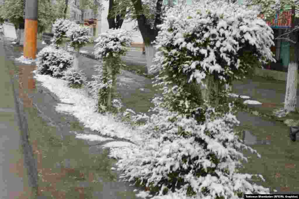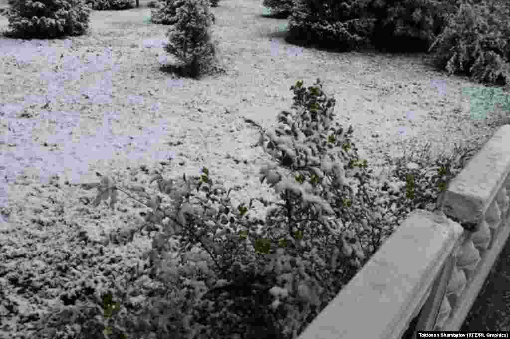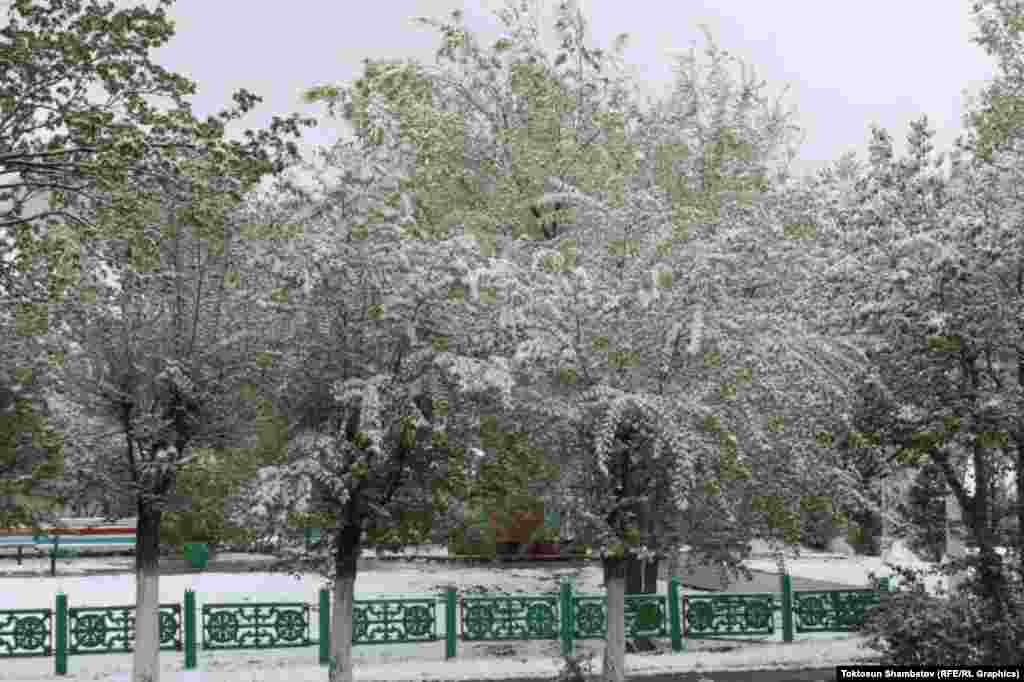 В некоторых районах Нарынской области выпал снег. Местами толщина снежного покрова достигает 5 сантиметров.