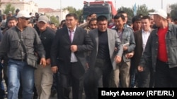 В это время  министр внутренних дел Зарылбек Рысалиев препирался  с удивительно похожей на него женщиной. Другая женщина сидела, а кровь текла на асфальт. Я не смогла увидеть ее лица - только  шлепанцы на носках.