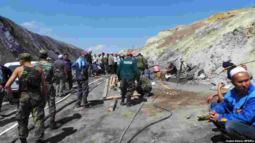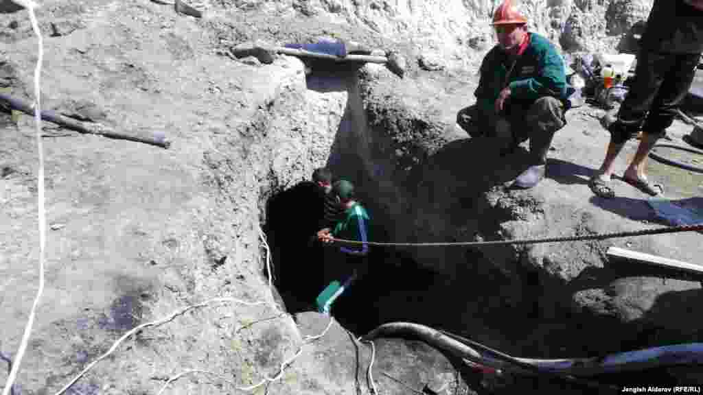 Фоторепортаж из Баткенской области. 13 августа пять человек самостоятельно спустились в угольную шахту в горах близ села Самаркандек. После этого из-за проливного дождя сошел сель, и выход из-под земли был заблокирован. Когда шахту начала заполнять вода, из нее успели выбраться двое. Они добрались до села и сообщили о произошедшем. "Азаттык", Кыргызская служба РСЕ/РС