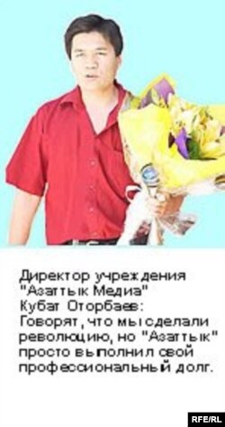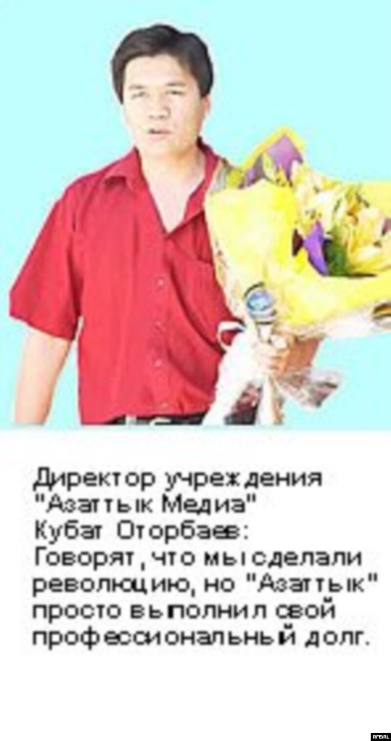Кубат Оторбаев: Во-первых, ко мне по этому вопросу пришли около 15 человек, которые вообще не работают у нас. Я принял 9 из них. Во время беседы мы не вели съемок. Может быть, это делали другие компании, не знаю. Однако, нашу просьбу дать интервью для телерепортажа они отклонили. Поэтому, мы сочили правильным пока не давать в эфир никакую информацию.