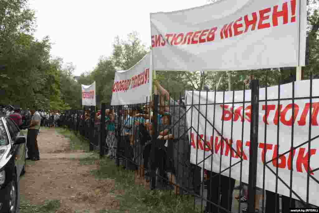 Первомайский суд Бишкека вынес решение о заключении экс-мэра столицы Наримана Тюлеева под стражу в Следственном изоляторе Госкомитета нацбезопасности сроком до 21 августа 2012 года. Ему поставили в вину нарушения закона во время закупки китайских автобусов для муниципального транспорта Бишкека и выпуска ценных бумаг мэрии, ущерб от которых, по версии следствия, составил 1 миллион 400 тысяч сомов. Фотографии Бакыта Асанова, Кыргызская служба РСЕ\РС (AI)