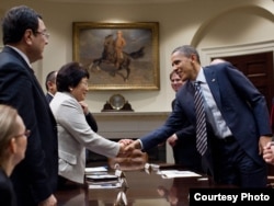 Президент Обама выразил благодарность главе Кыргызстана Розе Отунбаевой за поддержку американского транзитного центра в кыргызском аэропорту «Манас» во время встречи в Белом доме.