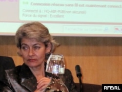 Ирина Бокова, вновь избранный Генеральный Директор ЮНЕСКО, во время симпозиума о книгах ЮНЕСКО по всемирной истории. Париж, 5 октября 2009 г. Фото Т.Чоротегина.